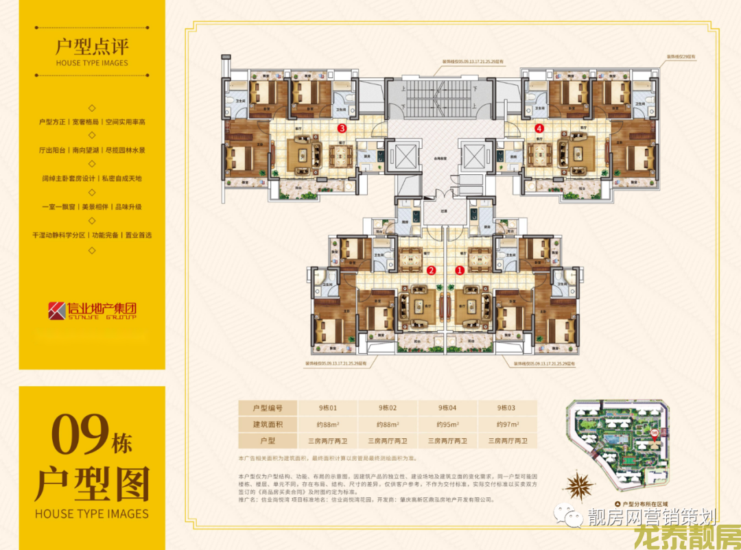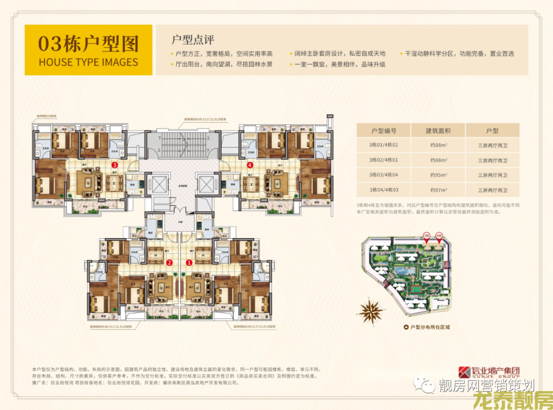 总建筑面积 :169145.3㎡ 土地年限:至2081年8月23日止 户型产品:99-131㎡南向及南北通透三四房 绿化率:39% 车位 :1066个 开发商 :信业地产集团 总户数 :1037户 物业公司 :广州创佳物业管理有限公司 物业费:2.5元/㎡/月 交楼时间 :现楼